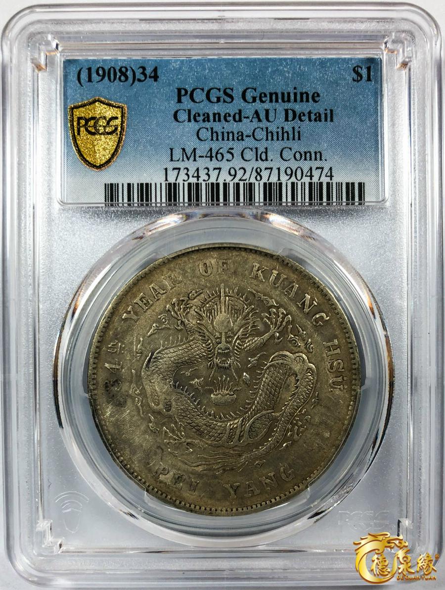 北洋造光绪三十四年七钱二分 PCGS AU92 87190474
