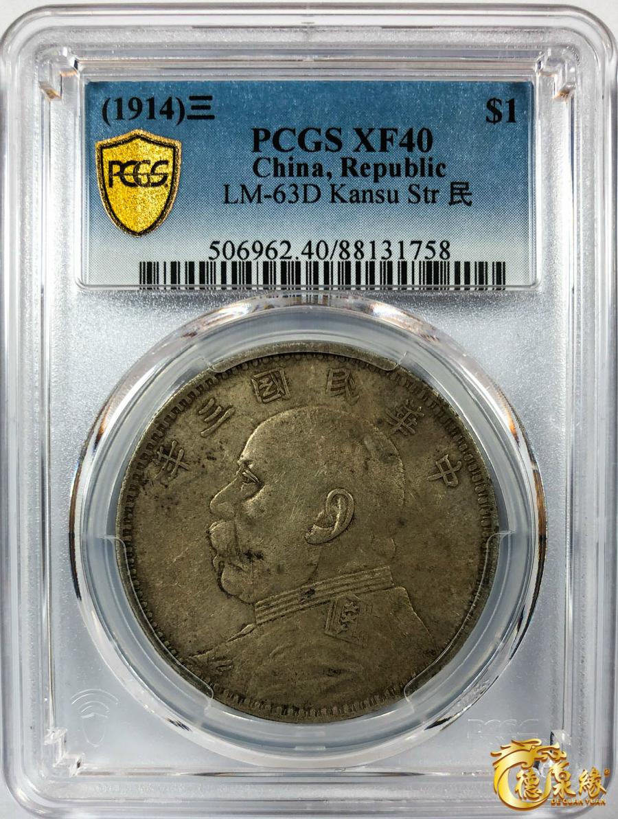 中华民国三年袁世凯像壹圆 PCGS XF40 88131758 甘肃版