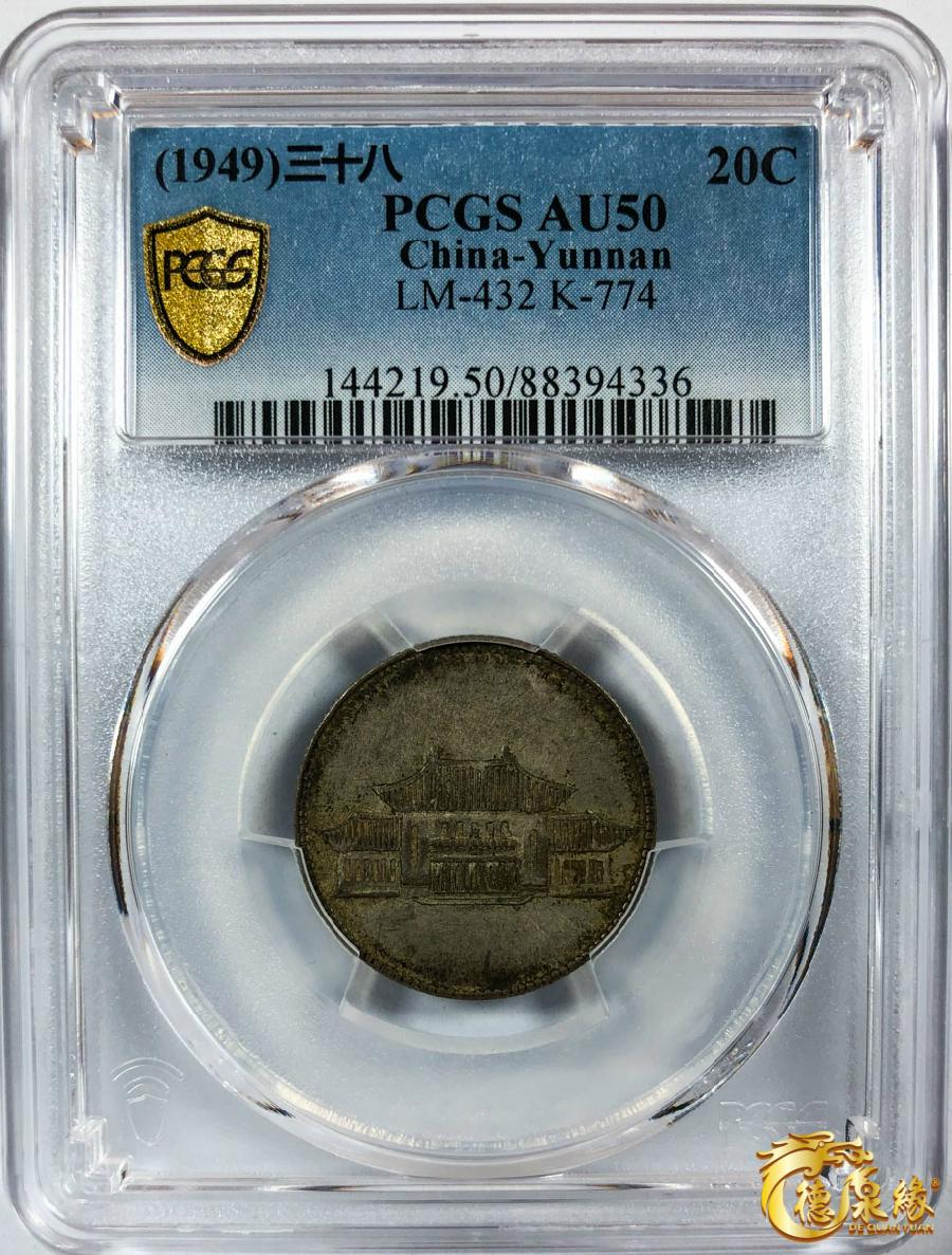 中华民国三十八年云南省造贰角 PCGS AU50 88394336 原味状态