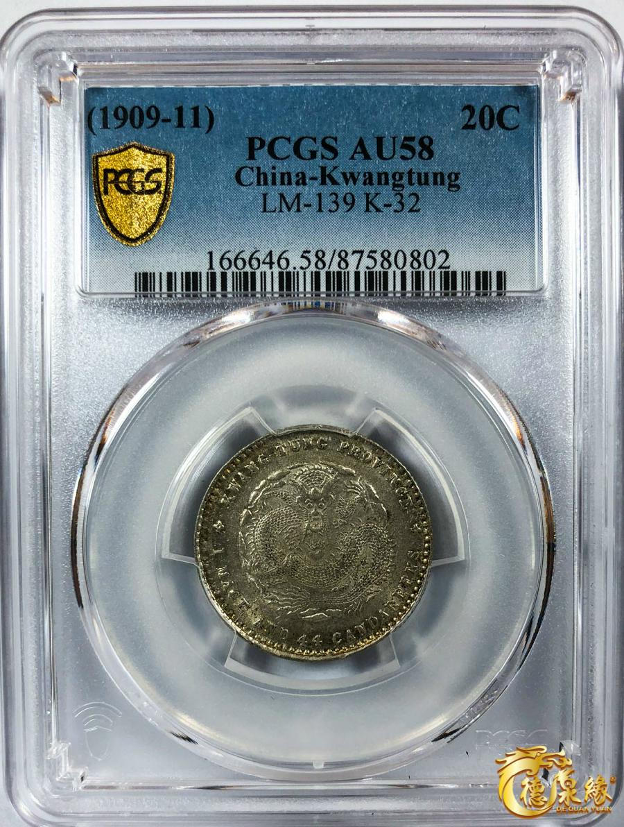 广东省造宣统一钱四分四厘 PCGS AU58 87580802