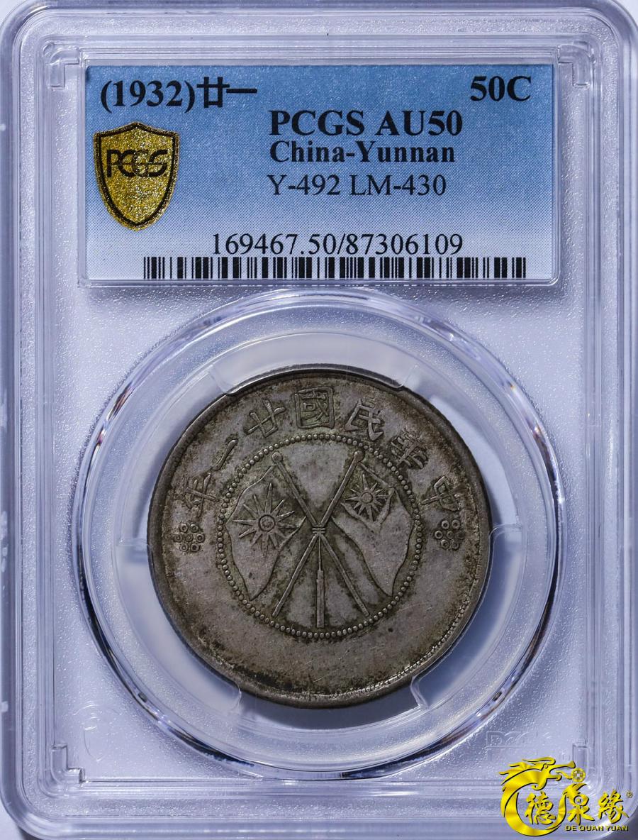 中华民国二十一年云南省造双旗半圆 PCGS AU50 87306109 点版