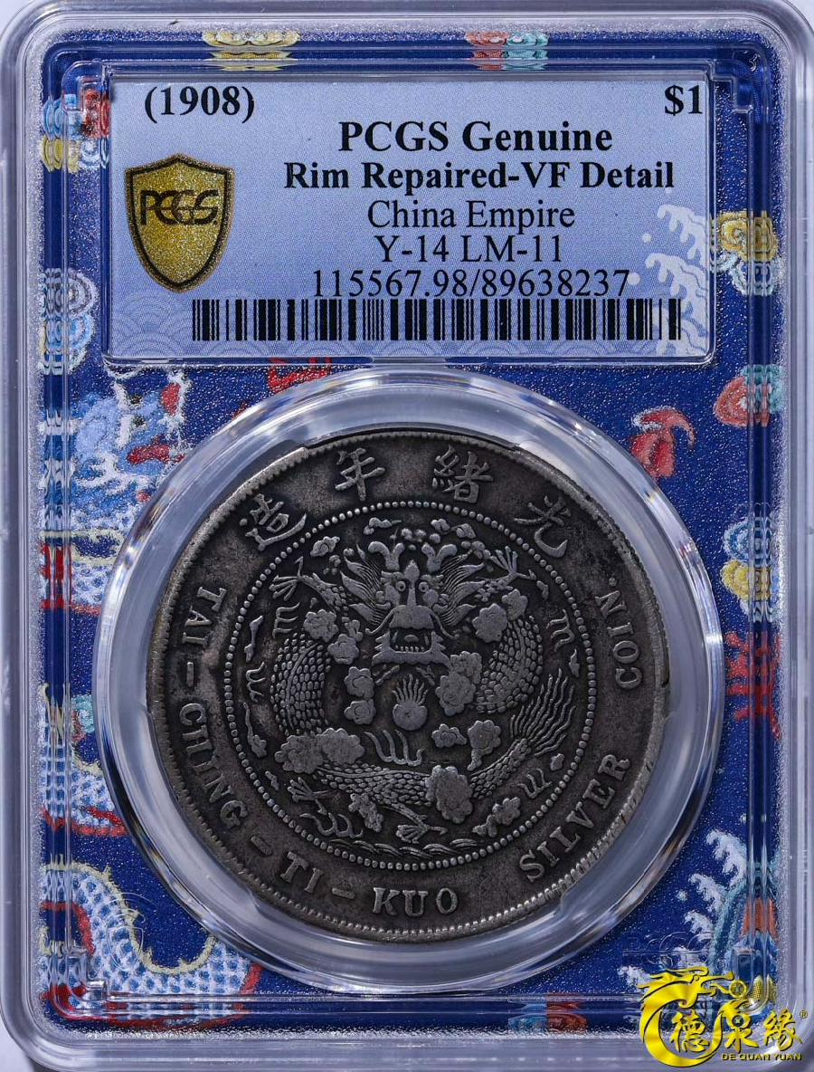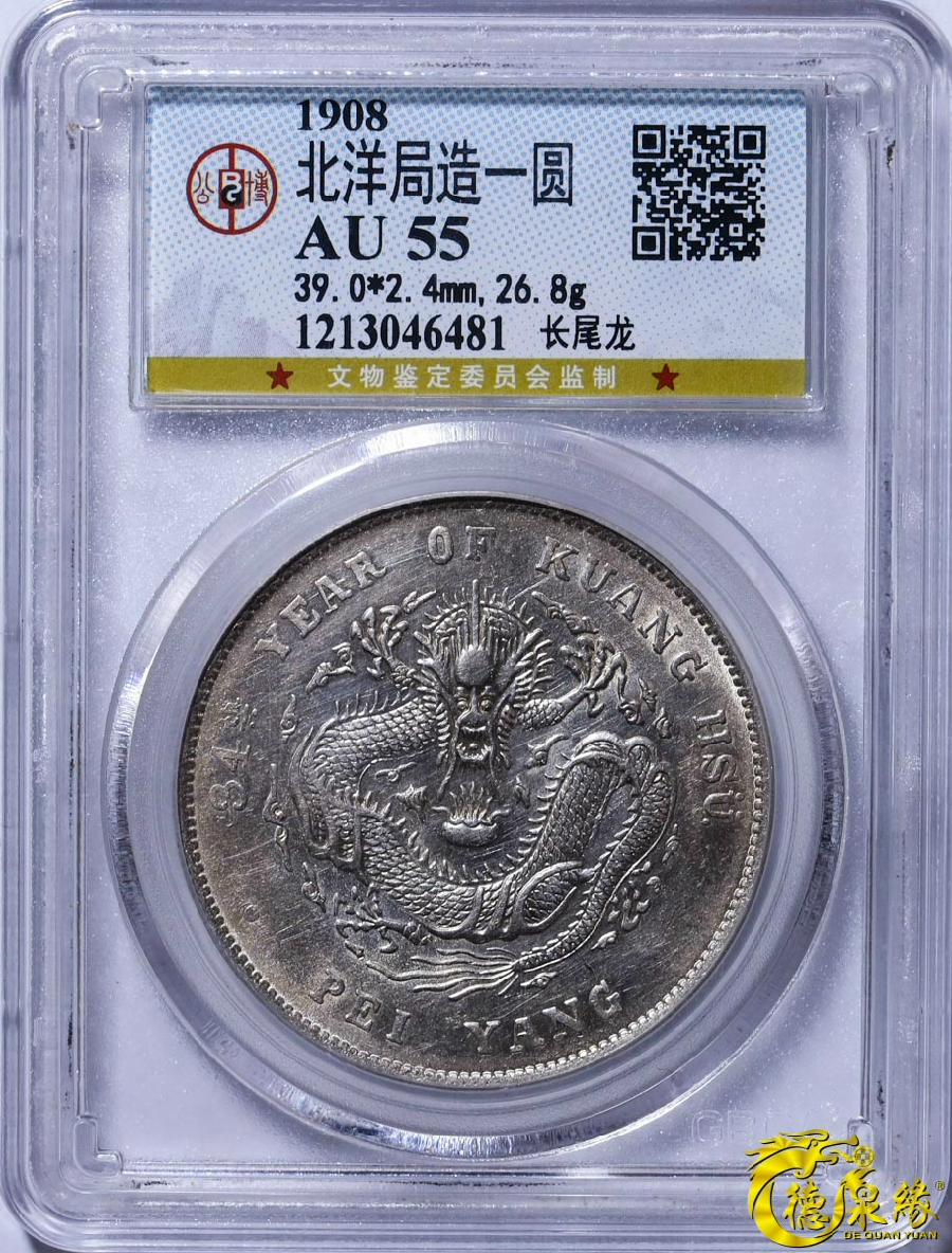 北洋造光绪三十四年七钱二分 GBCA AU55 1213046481 长尾龙