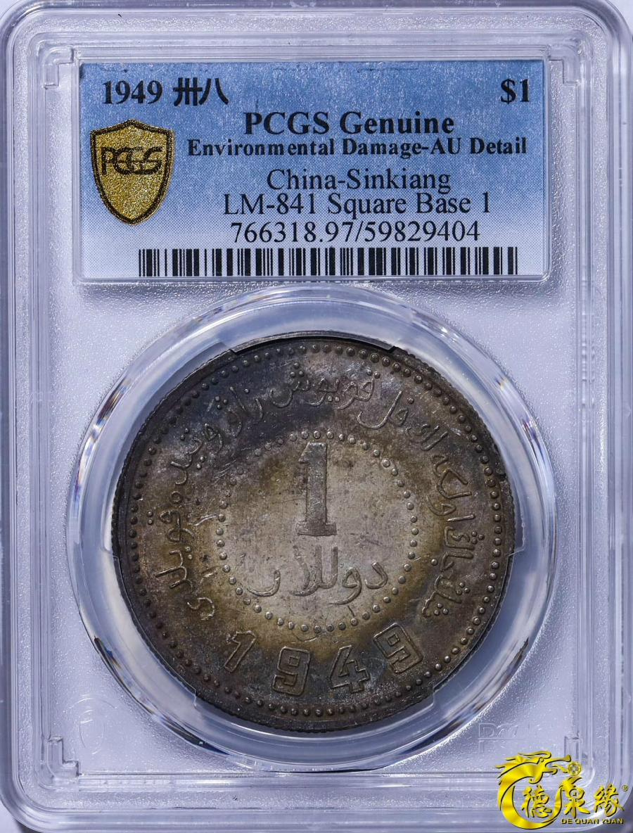 中华民国三十八年新疆省造壹圆 PCGS AU97 59829404 方足壹