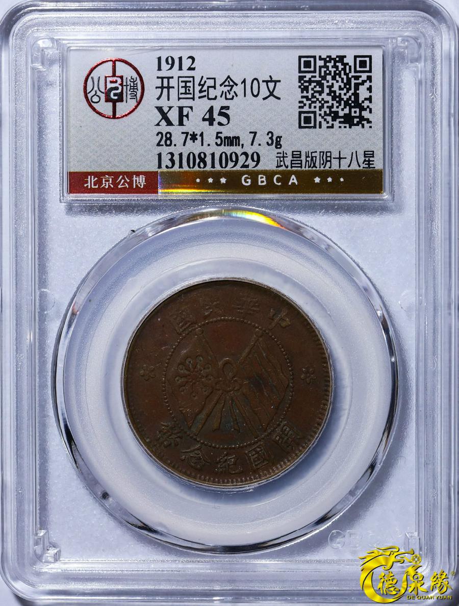 中华民国开国纪念币十文 GBCA XF45 1310810929 武昌版阴十八星