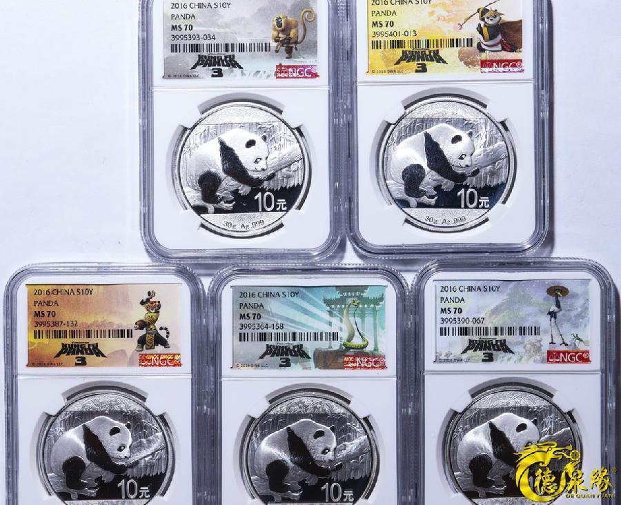 2016熊猫银币10元 NGC MS70 五枚一组 功夫熊猫套装 号码随机发货