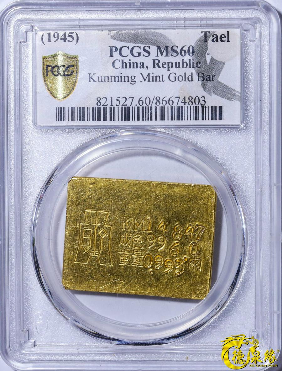民国三十四年中央造币厂铸厂条 PCGS MS60 86674803 昆明