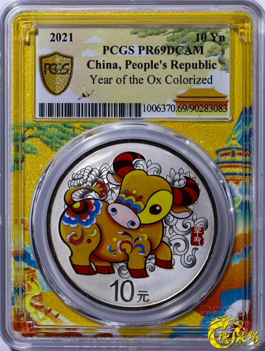 2021年彩银牛纪念币10元 PCGS PR69 90283083