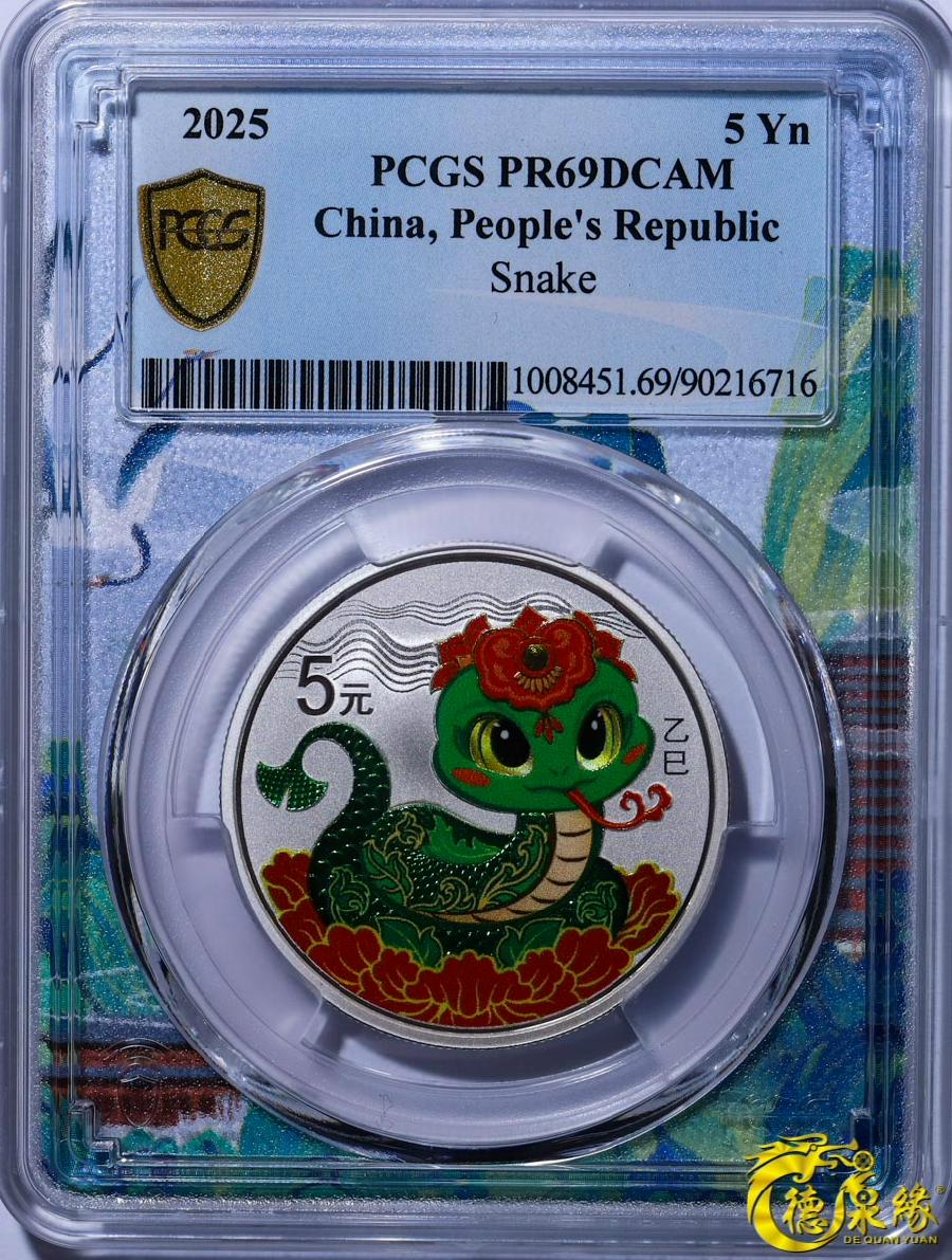 2025年彩银蛇纪念银币5元 PCGS PR69 90216716 杭州特殊标签